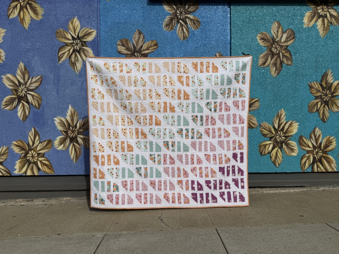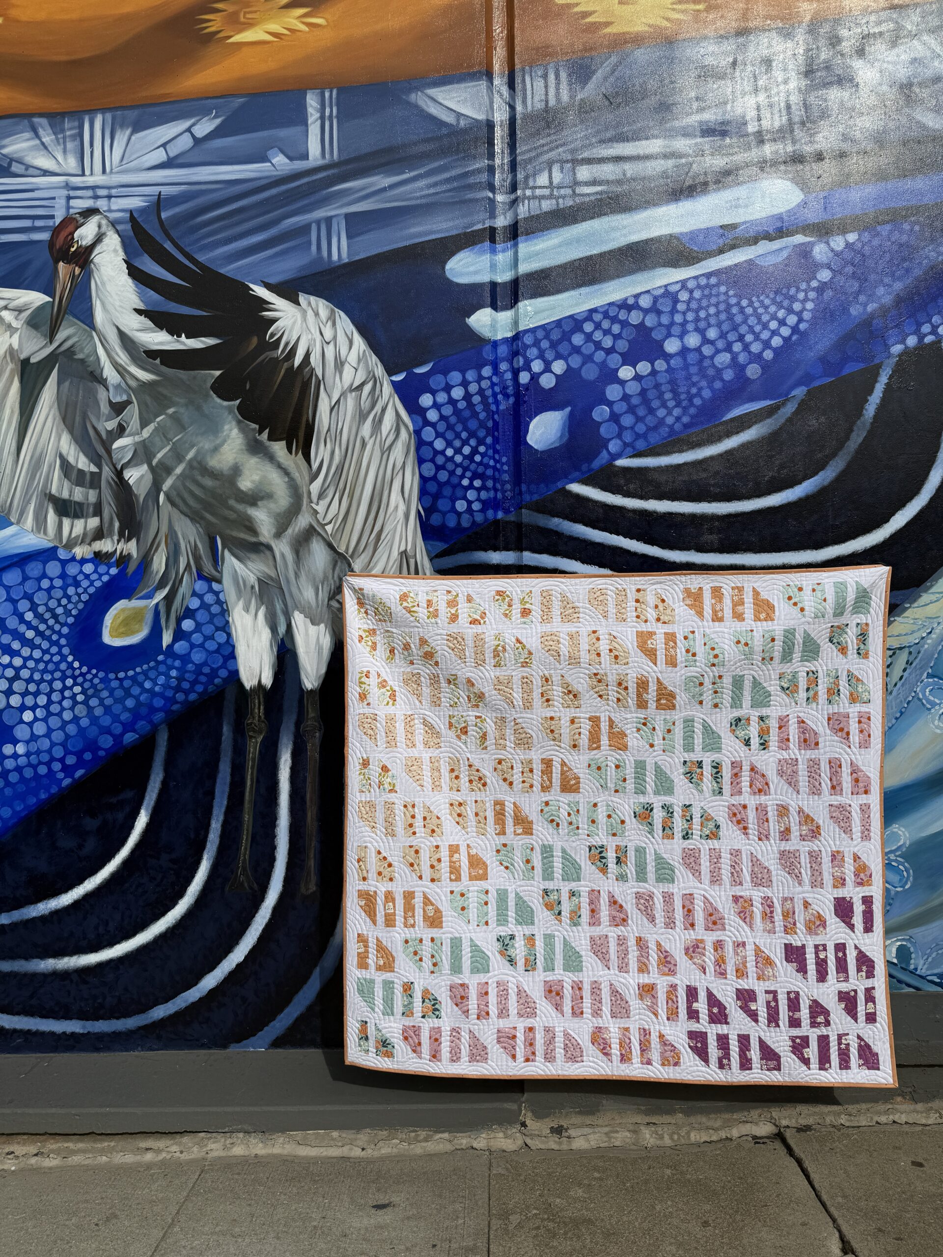 I was able to work with my local long armer, Dana Miller of Coastside Quilt Studio, to help me quilt it. We used the City of Fountains pantograph and it just finished it beautifully.