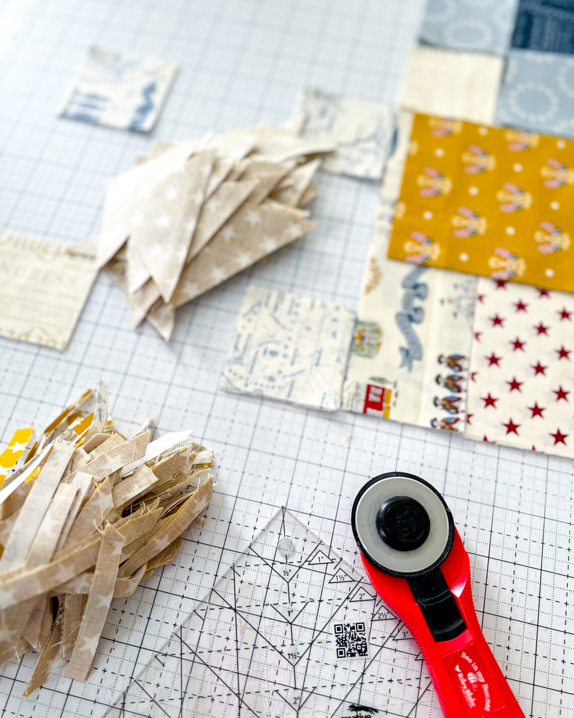Hey there, it’s Kelly Renay here. To let the fabric take the lead, I paired the Independence fabrics with my upcoming quilt pattern, Converging Paths. The design was chosen to quietly support the collection’s imagery, color story, and sense of unity, while allowing the center panel to remain the focus.