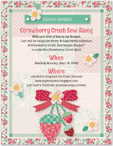 Join the fun on May 18th when Lori kicks off her Strawberry Crush Sew Along! You can follow below on Lori’s Blog & YouTube Channels.