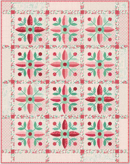 We can’t wait to see what you create with Berry & Sage fabrics and patterns as they arrive in shops this month! Download the FREE Wrap Around Porch Quilt by The RBD Designers below, and keep reading to learn more about the upcoming Strawberry Crush Sew Along!
