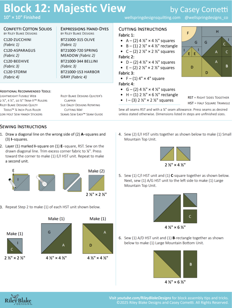Our 12th block is called Majestic View and is designed by Casey Cometti. As always, you can see our two blocks in our Batiks and Confetti Cottons™️.