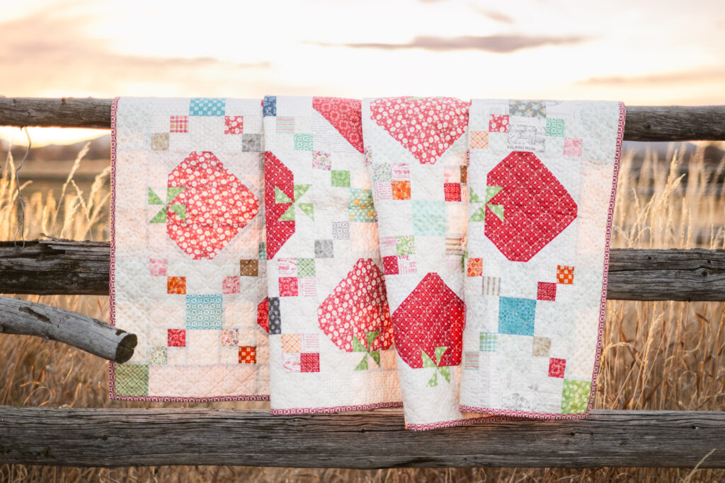 We have been loving all the projects being made with Lori Holt’s latest collection, Farmer’s Daughter! This collection has so many fabulous quilty projects and today we want to highlight the Sweet Strawberry Patch Runner and the Hen House Quilt!