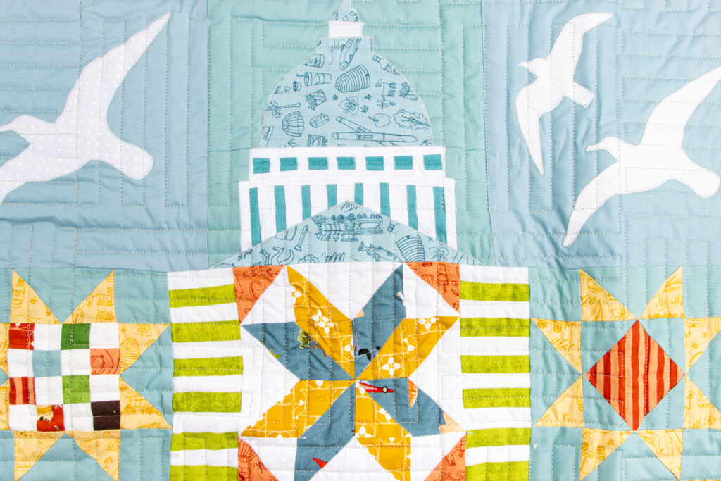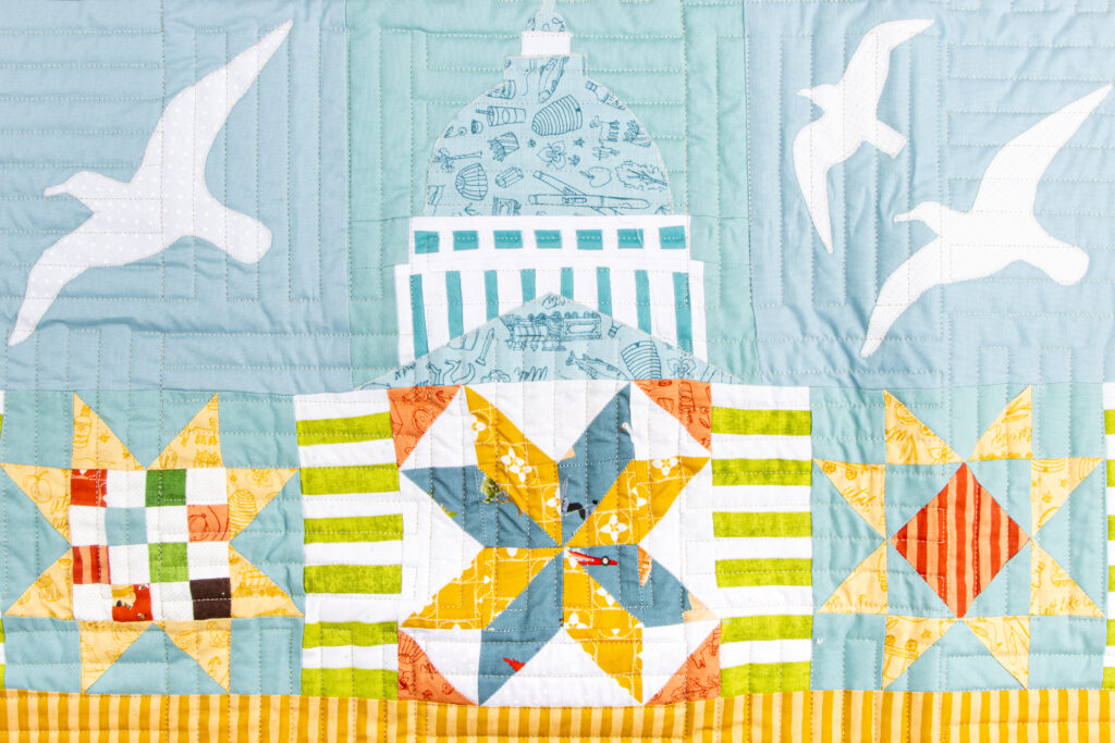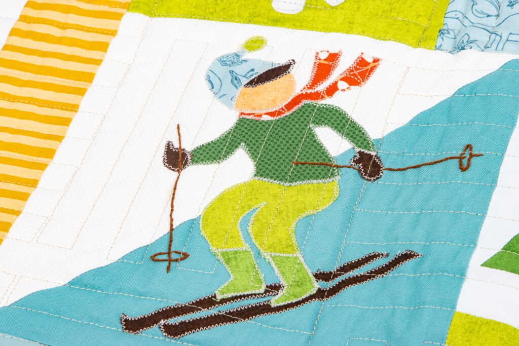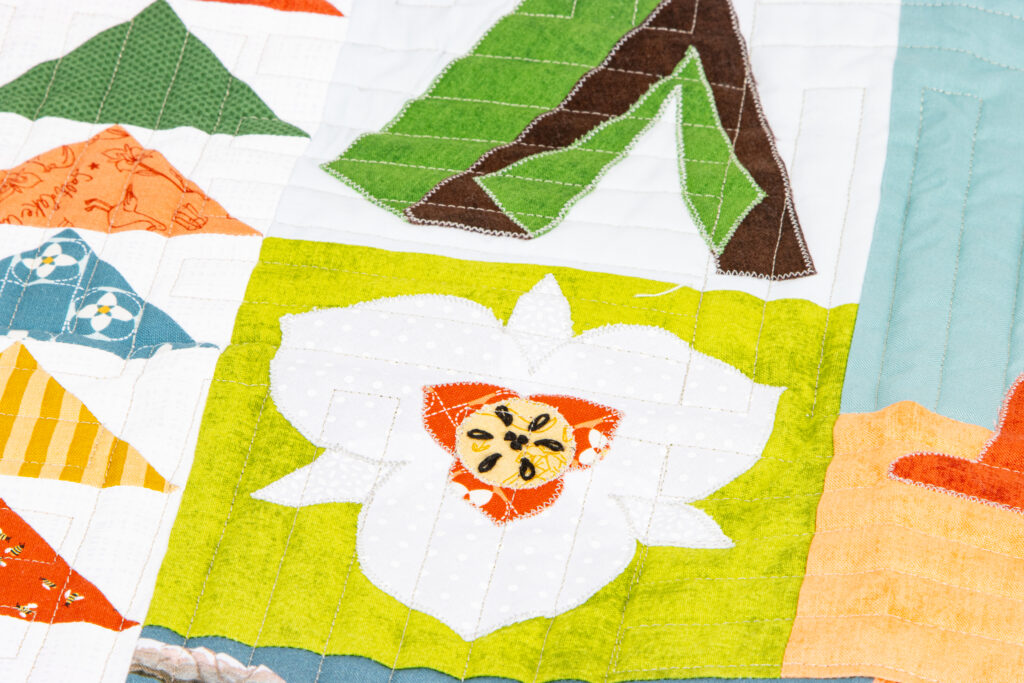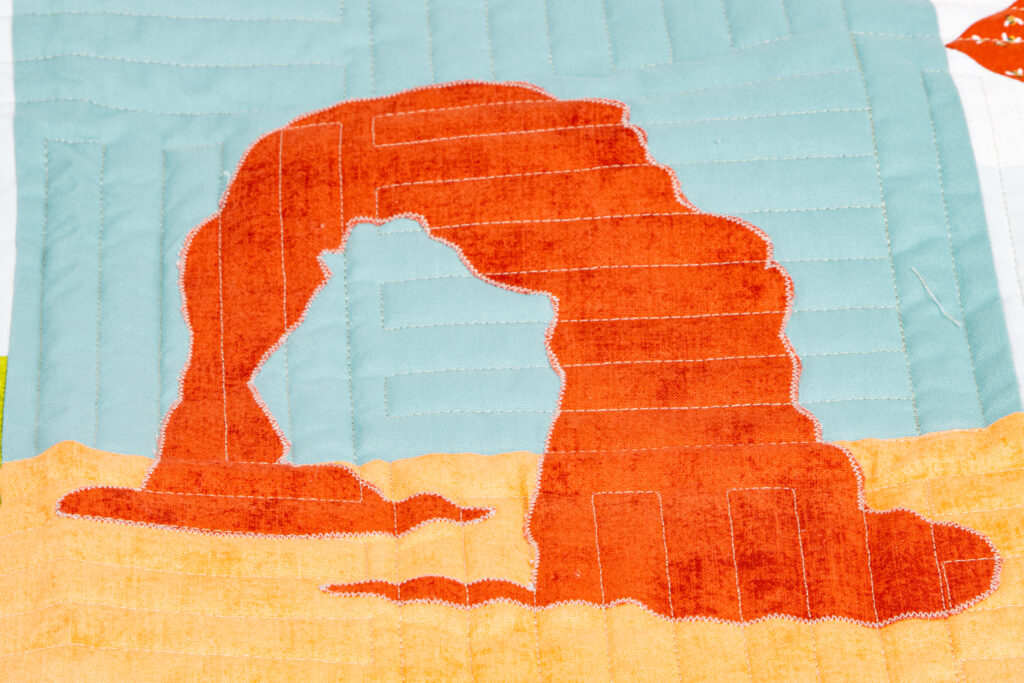 Featuring the Utah collection by Kelsey Carlson, this quilt is full of fun, meaningful details, from outdoorsy icons to classic quilt blocks, all brought together in a playful, modern layout. It’s the kind of quilt that tells a story, and we love how it celebrates the beauty and charm of Utah.