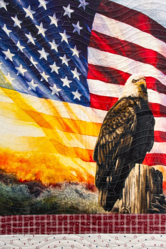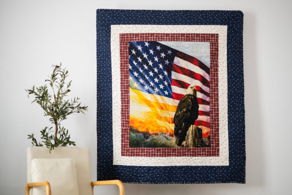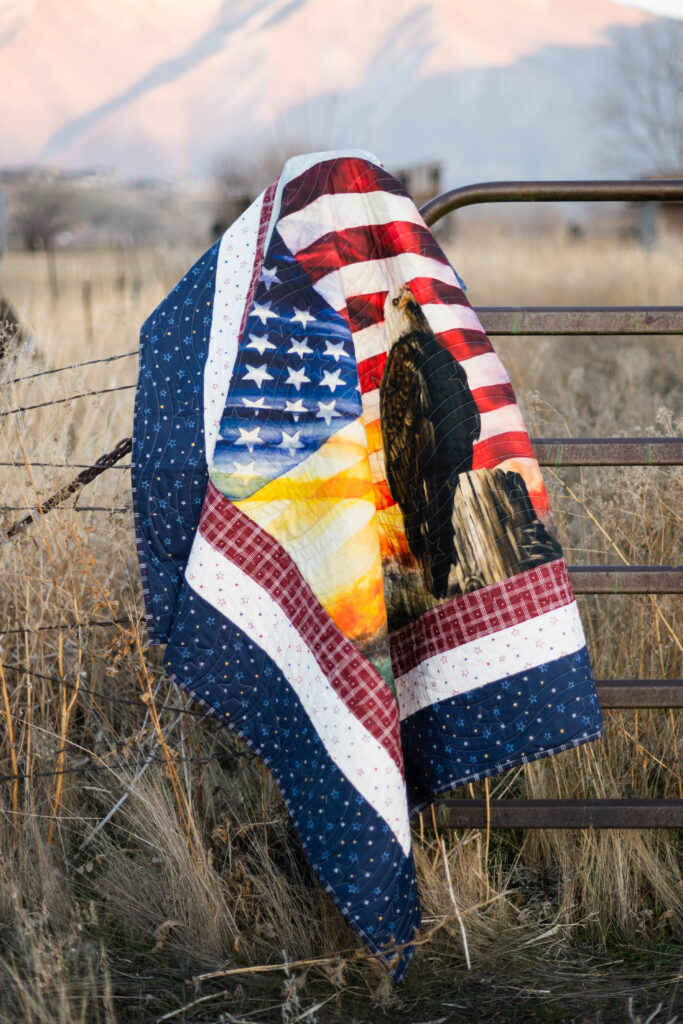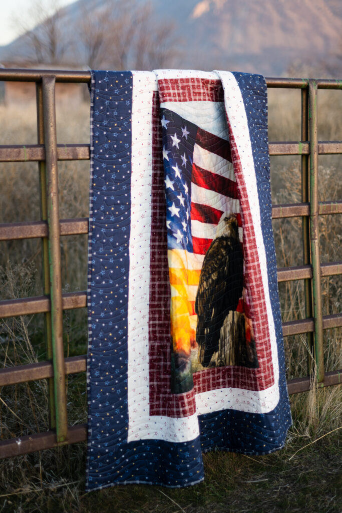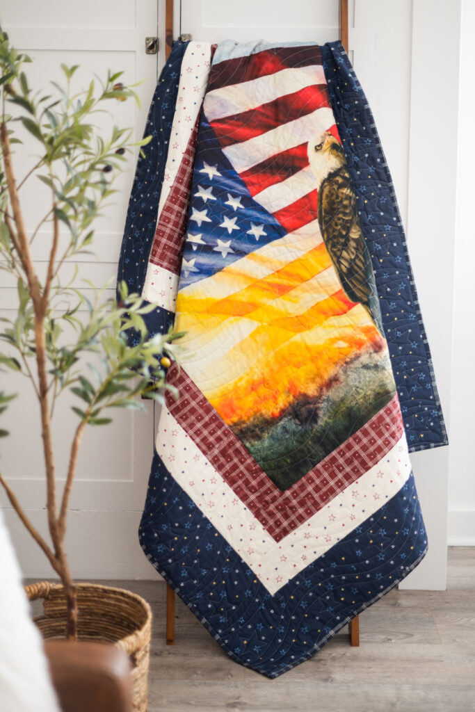 Celebrate our veterans with the American Honor Panel Quilt featuring the American Honor collection by Vicki Gifford! This pattern comes together quickly and showcases the American flag and iconic bald eagle. The PDF pattern is available for download below!