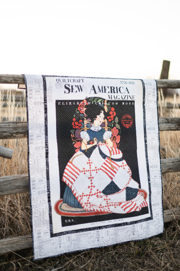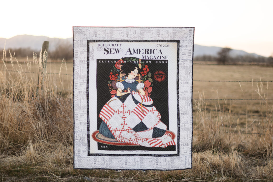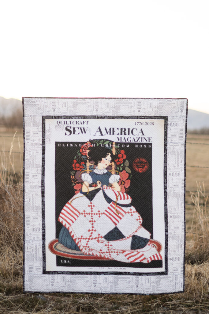 A combination of cherished reminders and collected WWII souvenirs were used to achieve J. Wecker Frisch’s vision for her Sew America collection and the Betsy Ross Main Panel Quilt. This patriotic quilt is full of vintage detail including letters to “the folks” saved by her grandmother and dad, antique music sheets, and trade cards. Download the FREE quilt pattern below and shop the entire Sew America collection in stores and online now!