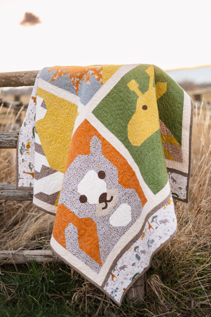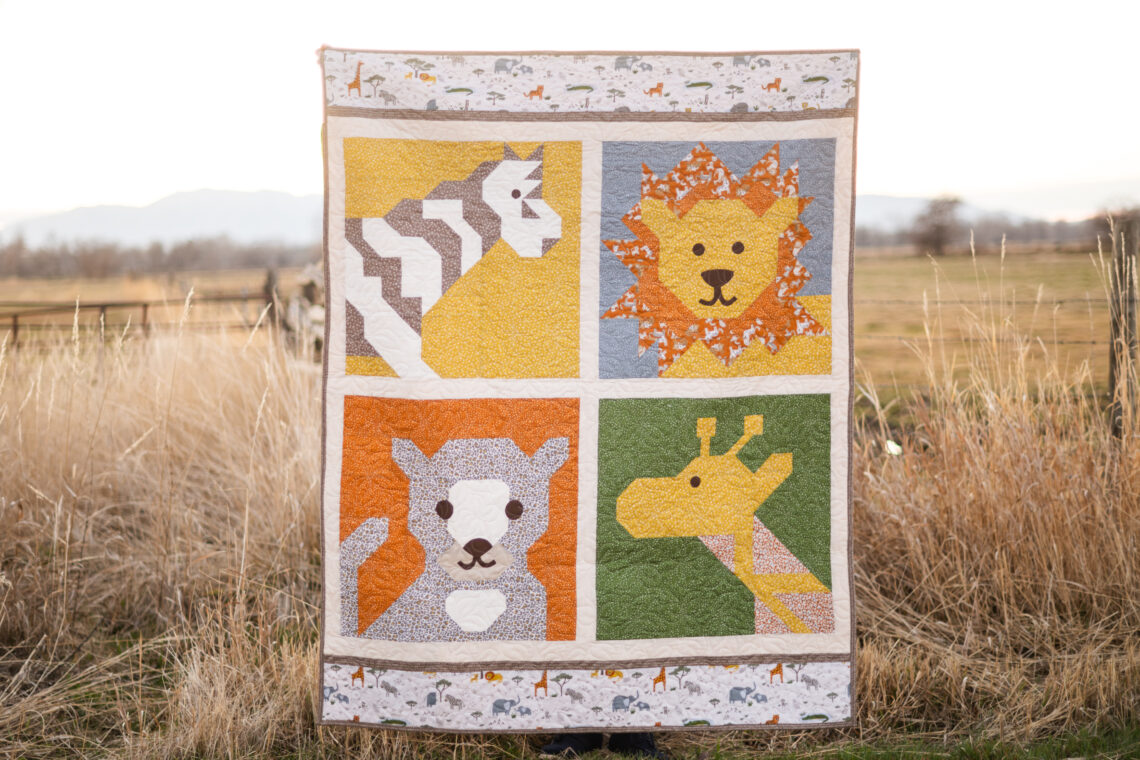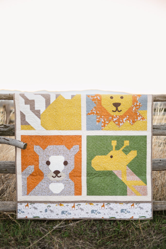 Stitch together some safari friends in this charming new quilt from the Leo & Savannah collection!