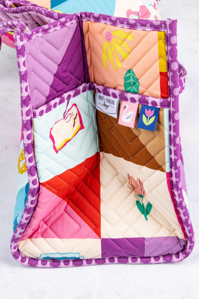 This collection is fabulous in all types of projects! We are so inspired by this tote bag using the cheater print! This is the All The Things Tote by Knot + Thread.