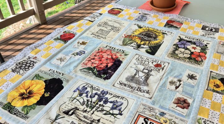 Make this Fun Spring Table Topper using Berry & Sage and the New Accuquilt Nosegay Die