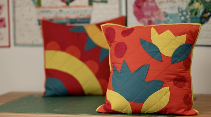 Decorative Tufted Pillow: Using Botanic Blast by Sew Yeah Quilting for a POP of whimsy and charm.